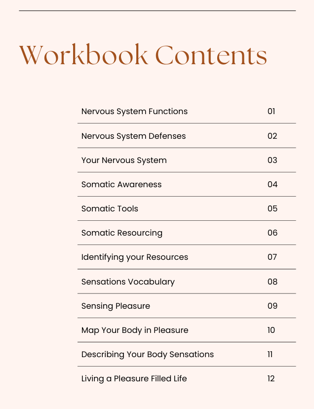 Resources for Purchase Evolving Your Nervous System Through Pleasure $20.00 Pleasure for Post Traumatic Growth Workbook $20.00 Have Questions or a Topic Request? Contact meanna.somatics@gmail.com
